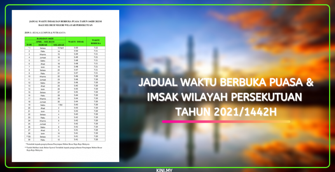 Berikut adalah jadual waktu berbuka dan imsak bagi Wilayah Persekutuan Kuala Lumpur dan Putrajaya: