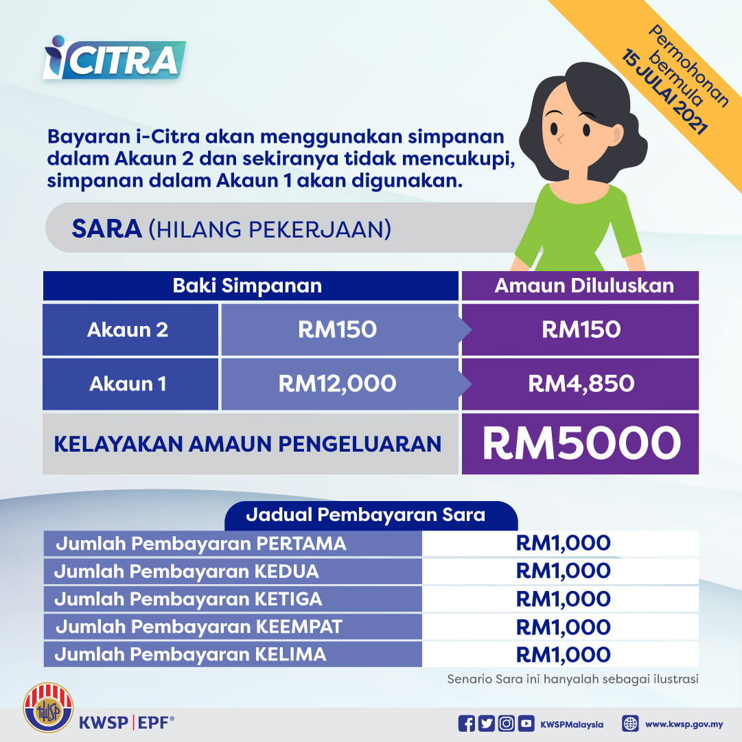 Masih lagi belum faham? Anda boleh rujuk infografik berikut dan lihat bagaimana pengeluaran kedua-dua akaun 1 dan akaun 2 KWSP digunakan untuk pengeluaran iCitra anda.