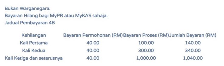 - Bagi kehilangan kad pengenalan yang disebabkan kes rompakan, samun, kecurian, malapetaka dan seumpamanya, laporan polis perlu disertakan yang menyatakan dengan jelas mengenai butir-butir kejadian dan kad pengenalan yang hilang.