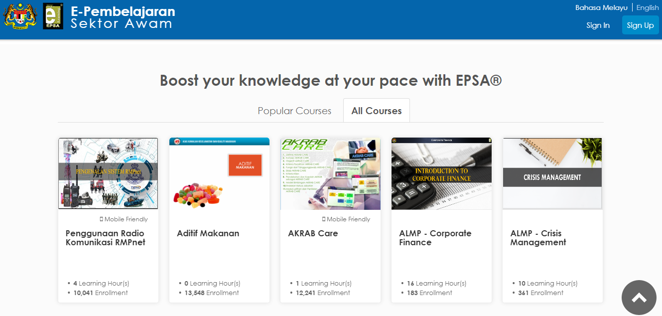 Buka laman web EPSA E- Pembelajaran Sektor Awam di https://www.epsa.gov.my
