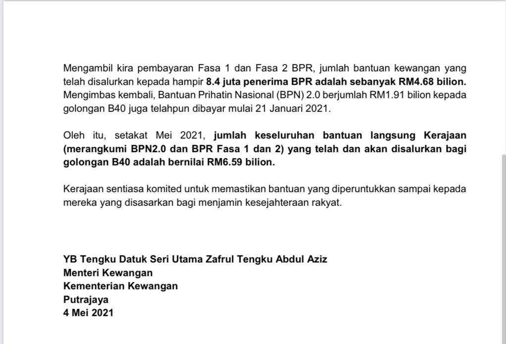 Pada 24 Februari 2021 yang lalu, penerima bayaran Bantuan Prihatin Rakyat (BPR) telah menerima bayaran BPR Fasa Pertama yang telah dikreditkan ke akaun bank masing-masing secara berperingkat.