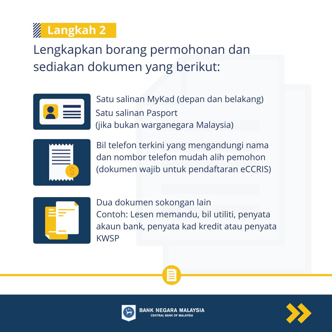 eCCRIS merupakan satu sistem laporan yang mengandungi maklumat kredit peminjam yang telah dilancarkan oleh Bank Negara Malaysia dan laporan CCRIS boleh didapati secara online dan percuma.