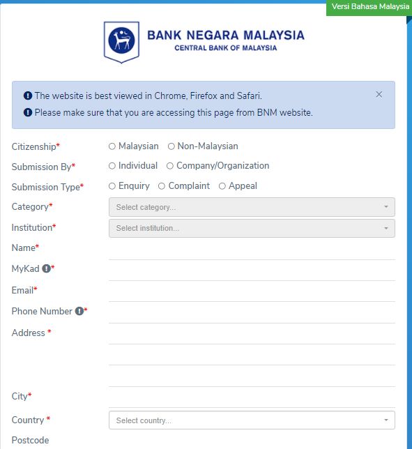 - Download borang pendaftaran berikut: https://www.bnm.gov.my/download-forms atau https://www.bnm.gov.my/documents.