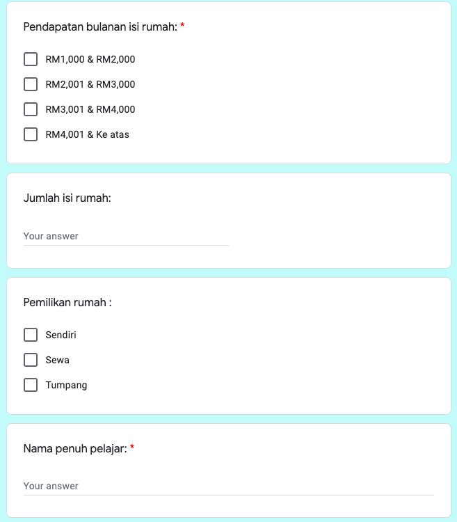 - Semua pelajar Tahun 4, Tingkatan 1, Tingkatan 4 dan Tingkatan 5