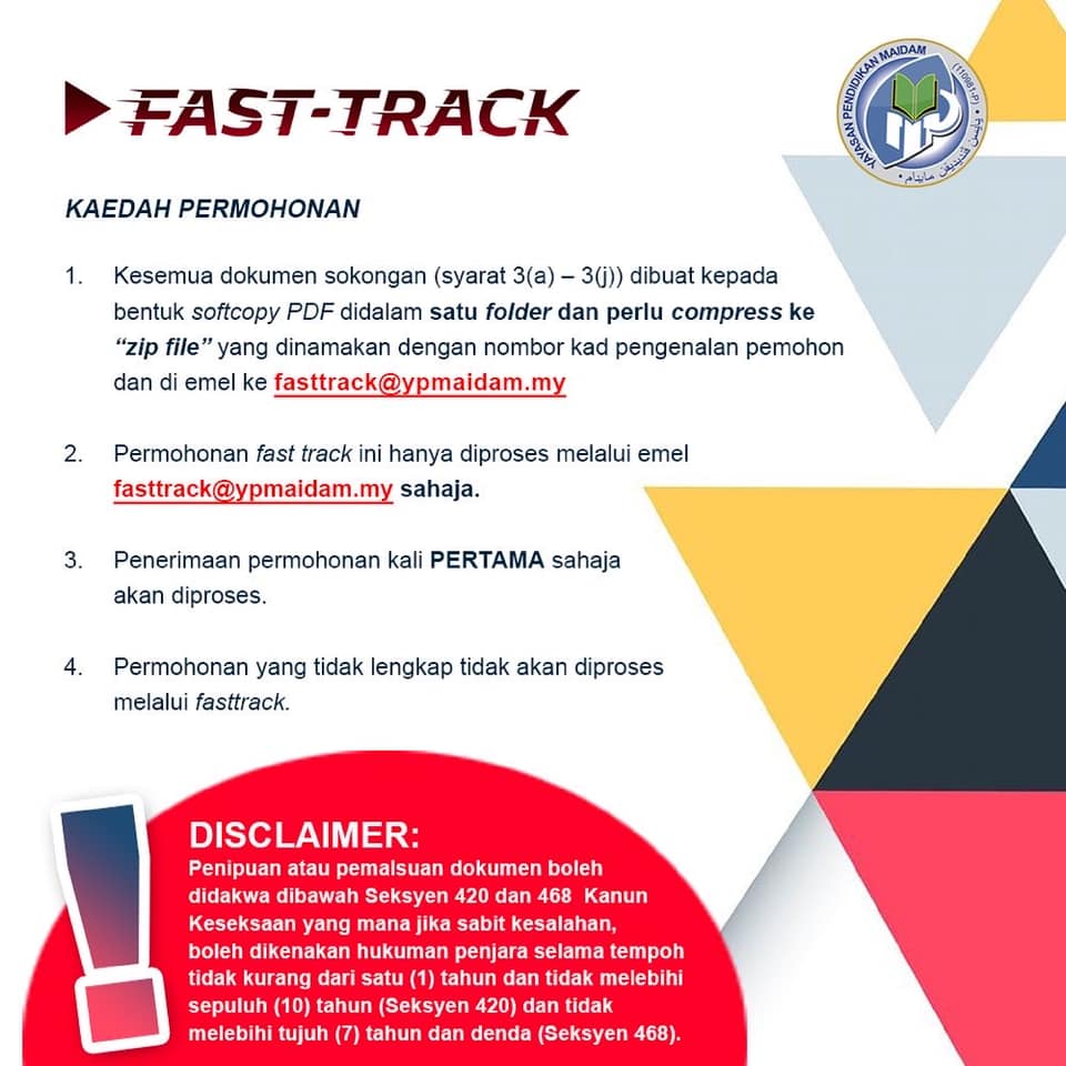 - Permohonan fast track ini hanya diproses melalui emel: [email protected] sahaja.