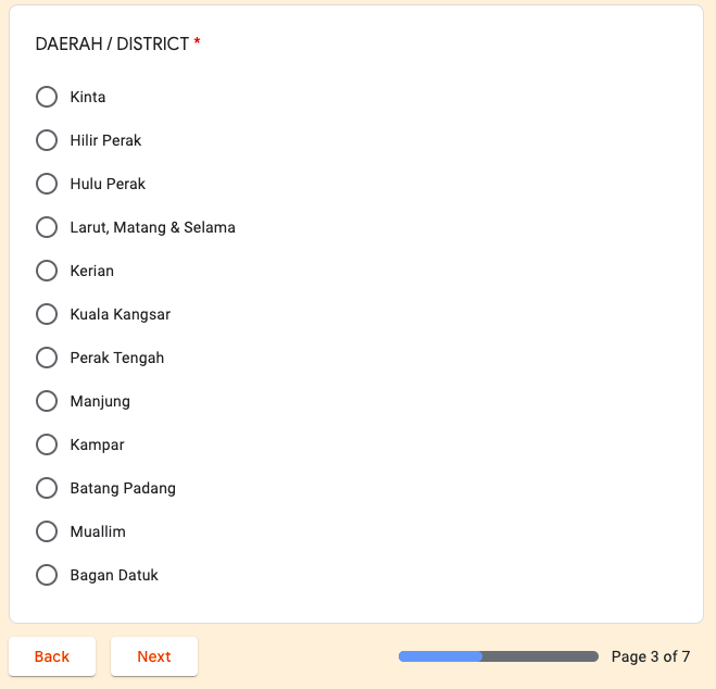 - Berumur antara 18 hingga 59 tahun serta menetap atau bermastautin melebihi 10 tahun di Negeri Perak.