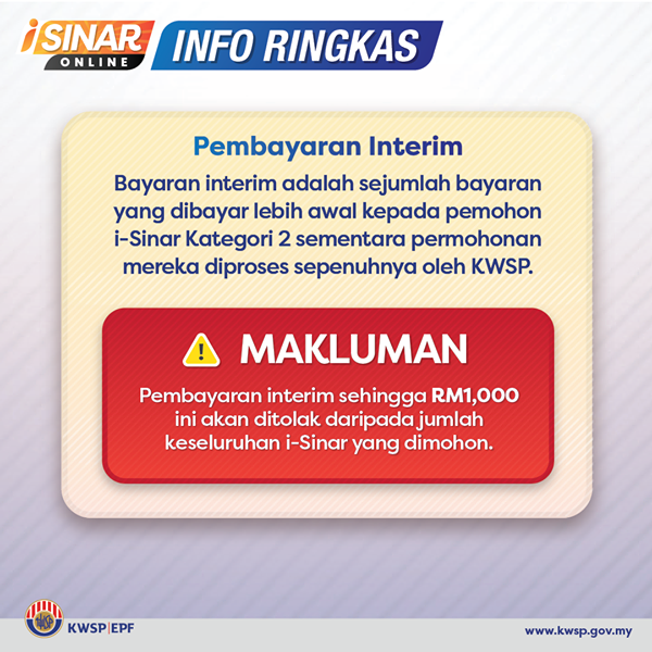 PEMBAYARAN INTERIM RM1,000 PEMOHON iSINAR KATEGORI 2