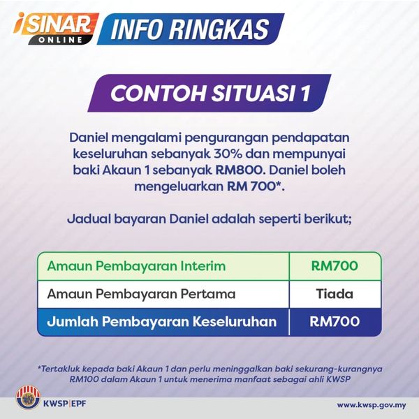 Sebarang pertanyaan mengenai pengeluaran i-Sinar KWSP Akaun 1, sila hubungi pihak KWSP di: