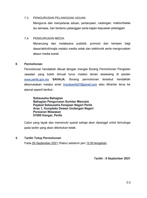 - Jabatan: Pentadbiran Setiausaha Kerajaan Negeri Perlis