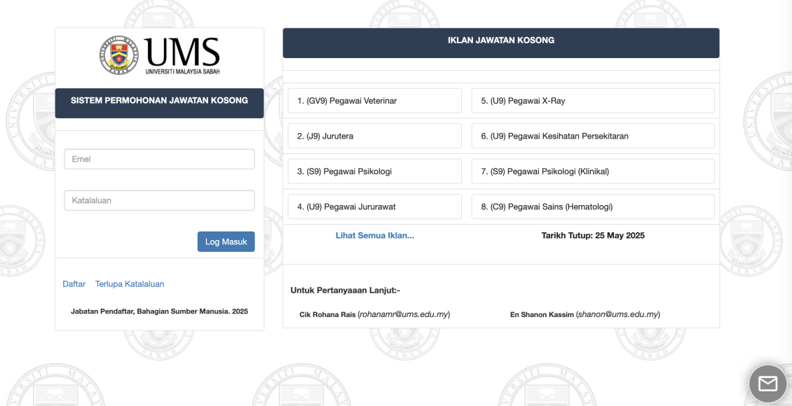 Senarai Jawatan Kosong Terkini di UMS
