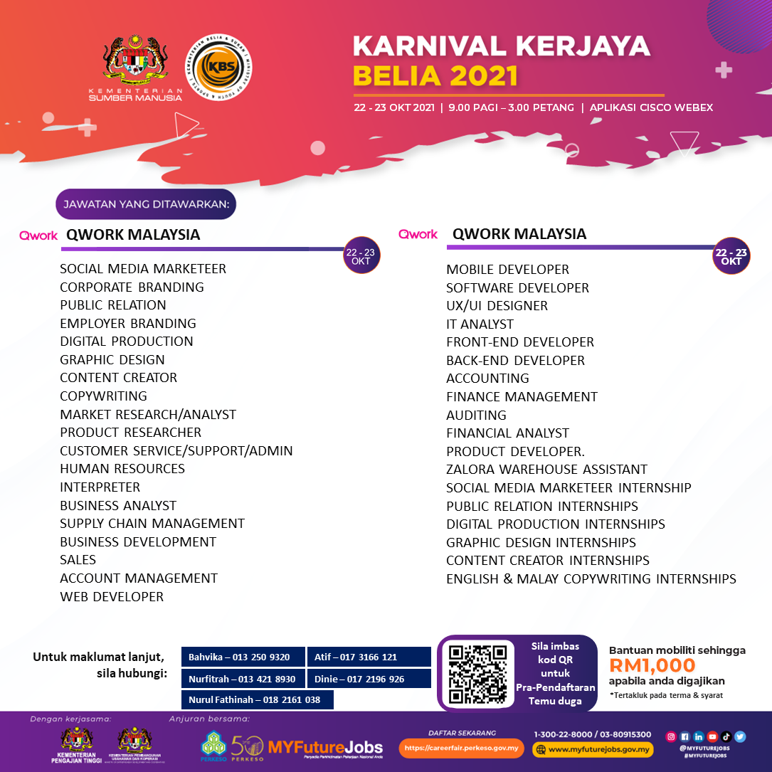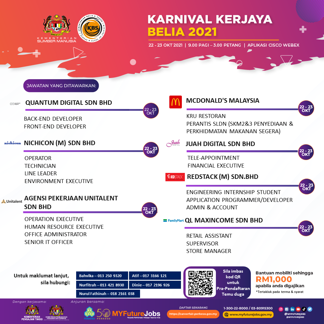 Graduan & Lepasan Sekolah Cari Kerja? Ikuti Karnival Kerjaya Belia 2021, RM1,000 Bantuan Mobiliti