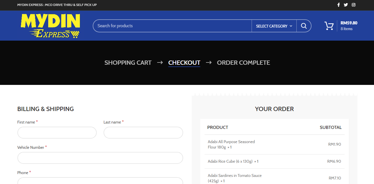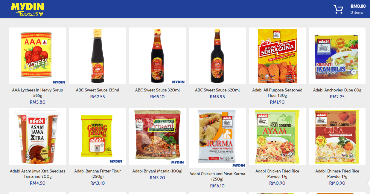 Anda hanya perlu membuat tempahan secara dalam talian dan kemudian mengambil barangan yang ditempah secara pandu lalu di Mydin berdekatan.