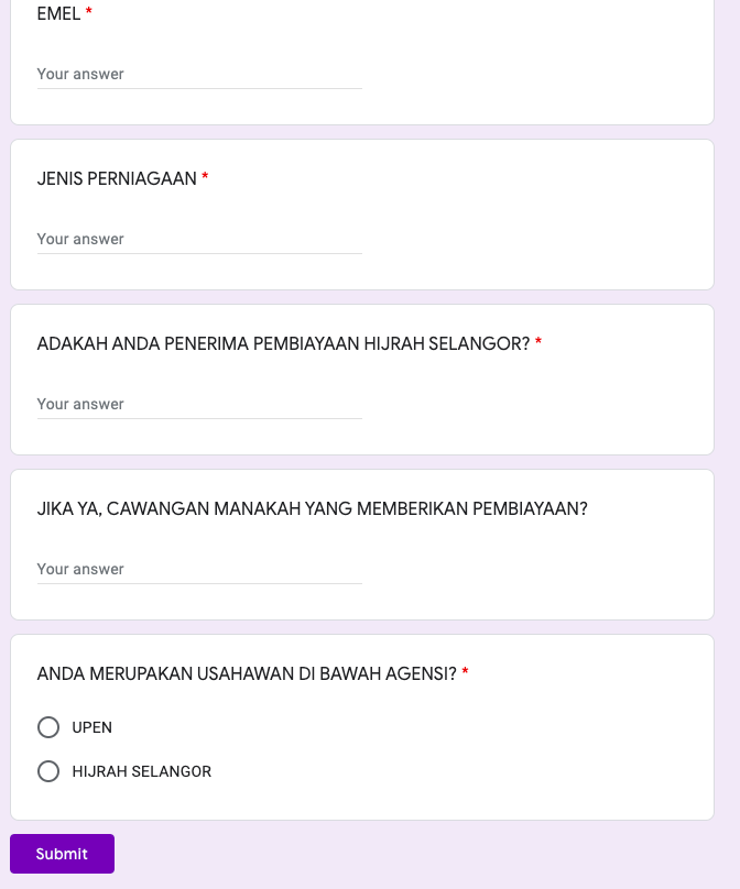 - Klik SUBMIT untuk menghantar permohonan anda.