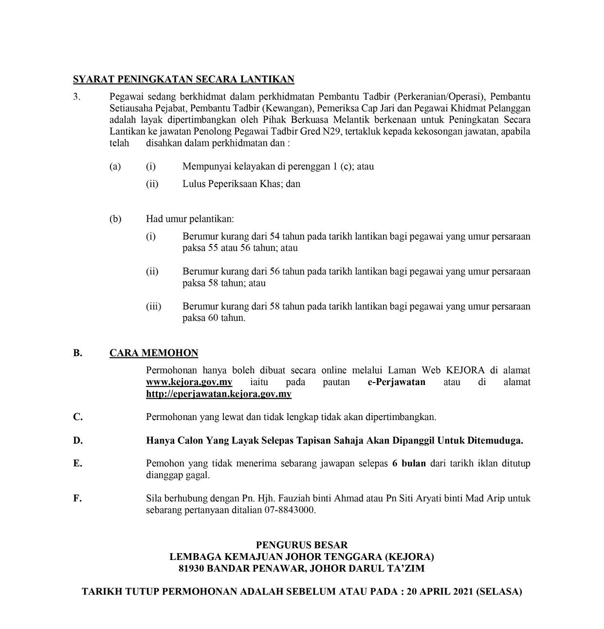 CARA MEMBUAT PERMOHONAN JAWATAN LEMBAGA KEMAJUAN JOHOR TENGGARA (KEJORA)