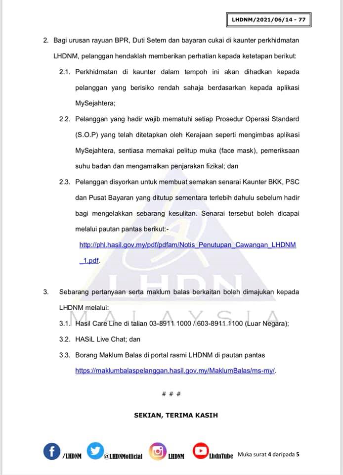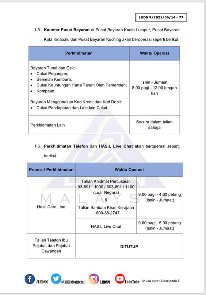 Dapatkan senarai perkhidmatan LHDNM sepanjang PKP 3.0 seperti yang dinyatakan melalui kenyataan media LHDNM berikut: