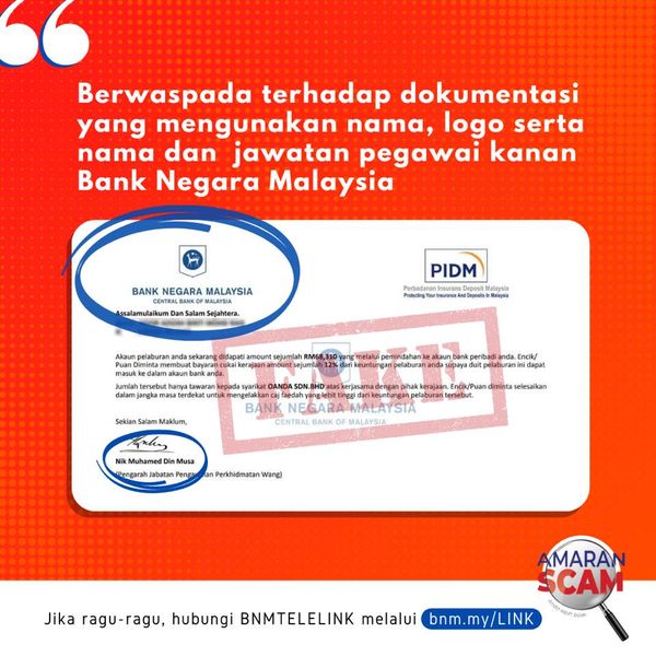 Waspada! Nama & Logo Bank Negara Malaysia (BNM) Telah Disalahguna. Hati-Hati Jangan Tertipu!