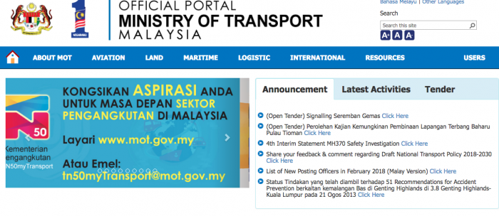Laman web rasmi JPJ: http://www.mot.gov.my/en