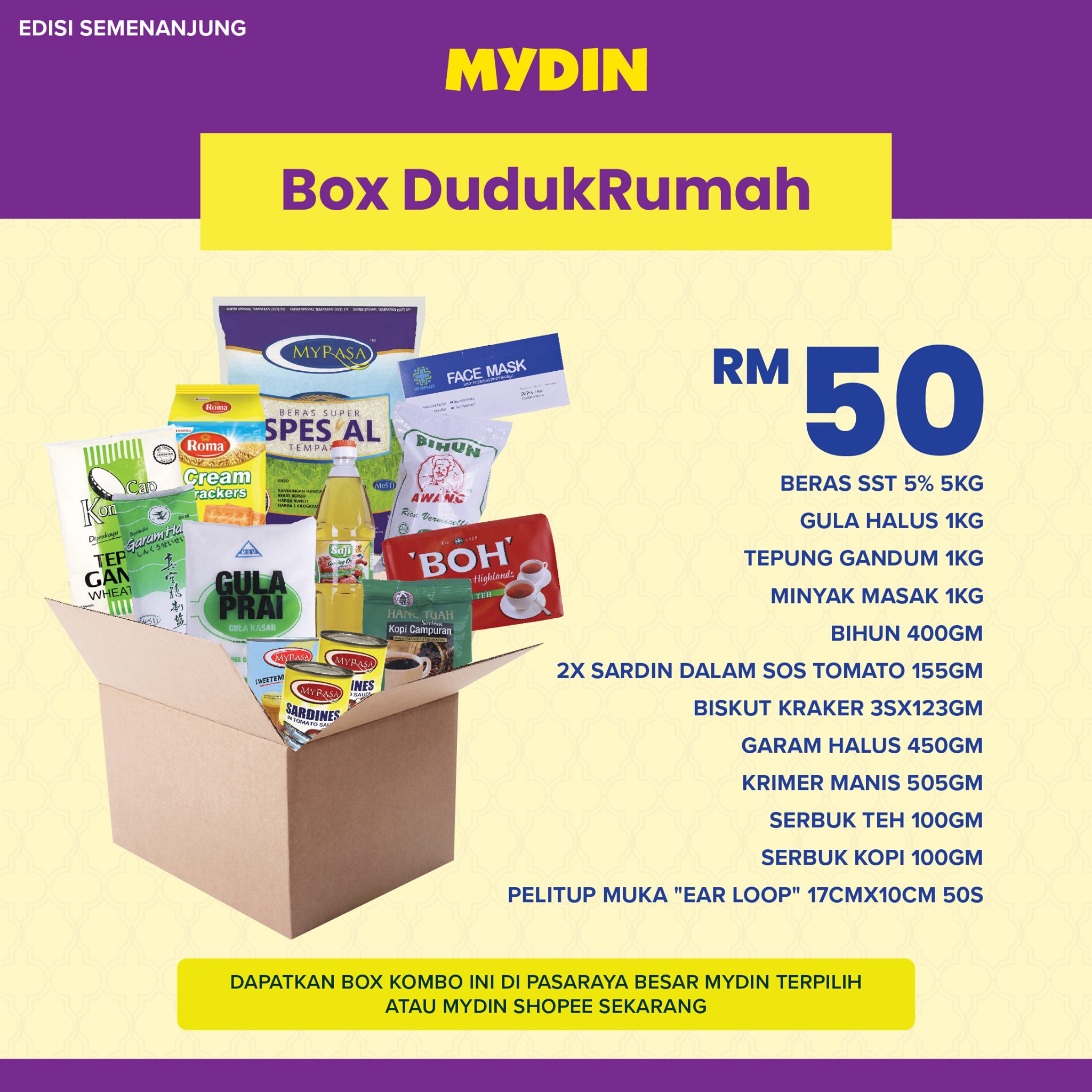Selain daripada Mydin Prihatin, Mydin juga menawarkan Kombo Box pada harga istimewa khusus untuk tujuan ini. Pelbagai jenis barang ada sesuai untuk diberi sebagai sumbangan kepada mereka yang memerlukan.