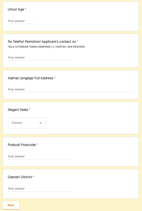 - Klik NEXT untuk mengisi maklumat yang seterusnya.