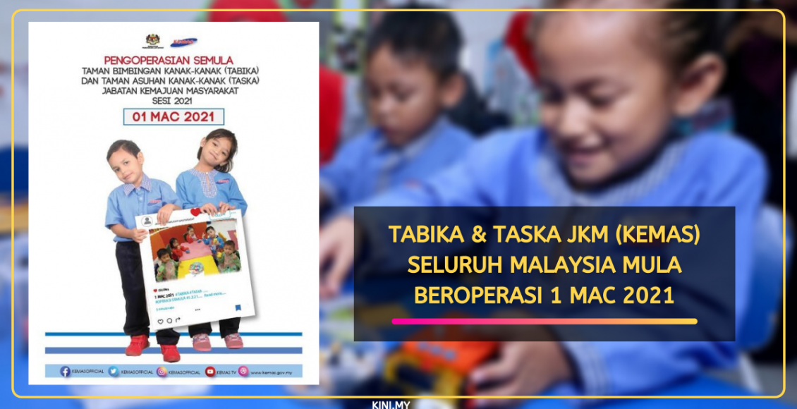 Pembukaan Taska dan Tabika KEMAS adalah selaras dengan pengumuman pengoperasian semula institusi pendidikan di bawah Kementerian Pendidikan Malaysia (KPM).