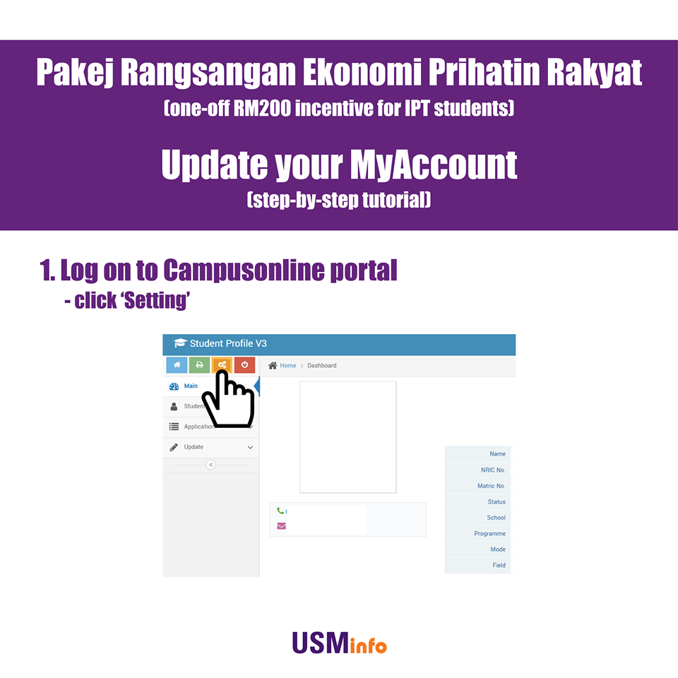 Sehubungan dengan itu, pihak Universiti Sains Malaysia (USM) meminta pelajarnya untuk mengemaskini akaun bank masing-masing di Portal e-FAS untuk menerima bayaran bantuan.