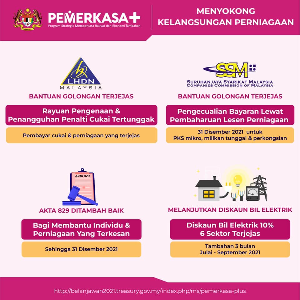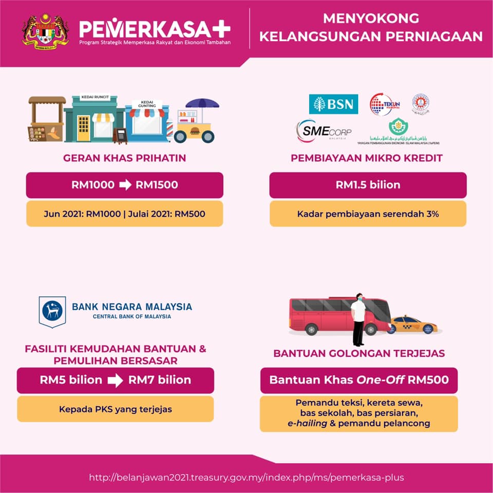 - Program bantuan PEMERKASA PLUS berjumlah RM40 bilion bantu redakan cabaran ekoran pelaksanaan PKP3.0.