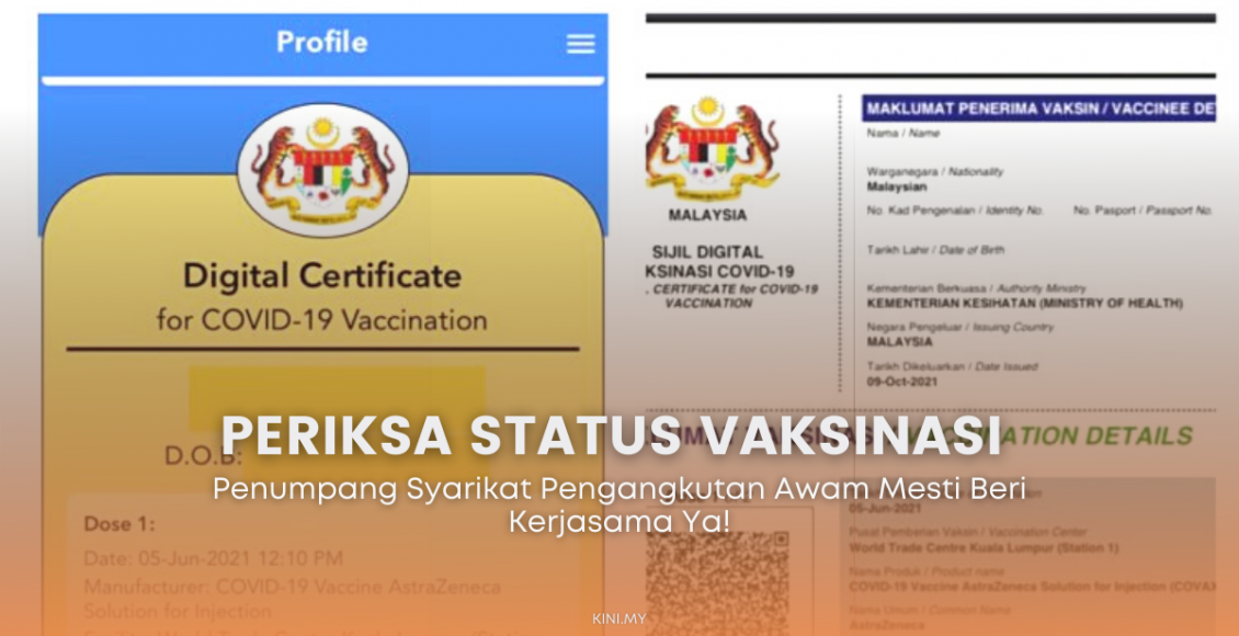 Bagi seluruh rakyat Malaysia yang menggunakan pengangkutan awam, beri kerjasama setiap kali diminta syarikat pengangkutan awam untuk menunjukkan status vaksinasi anda!