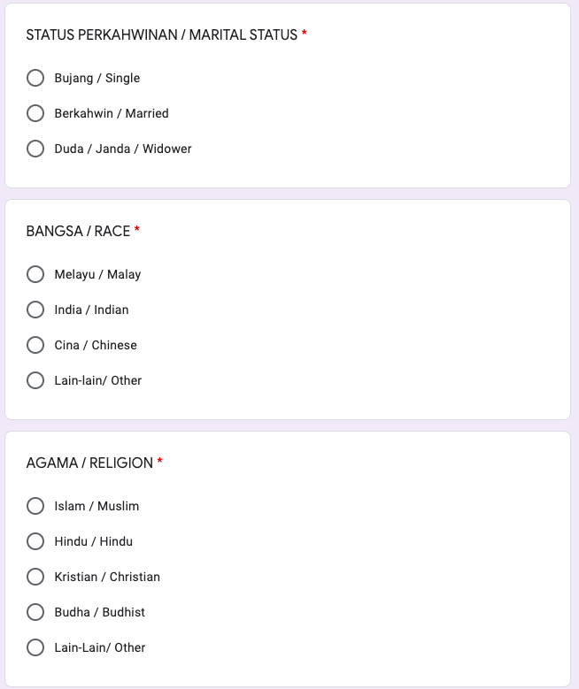 • Isikan maklumat dengan betul dan tepat pada setiap borang pendaftaran.