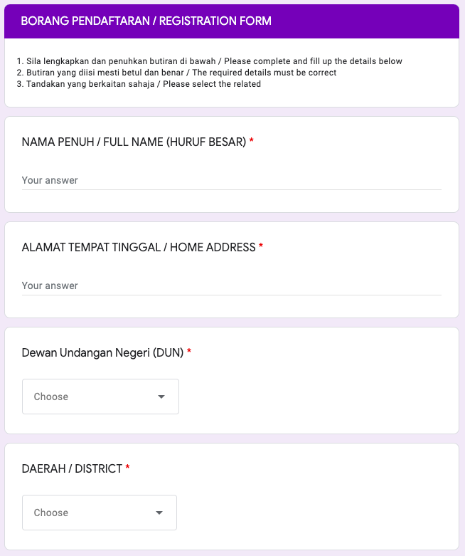 • Isikan maklumat dengan betul dan tepat pada setiap borang pendaftaran.