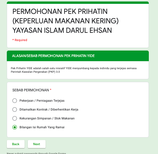 Untuk pengetahuan anda, Yayasan Islam Darul Ehsan (YIDE) mengambil inisiatif dengan membuka Kaunter Prihatin YIDE bagi membantu individu atau keluarga yang terkesan semenjak PKP 3.0 diumumkan oleh kerajaan baru-baru ini.
