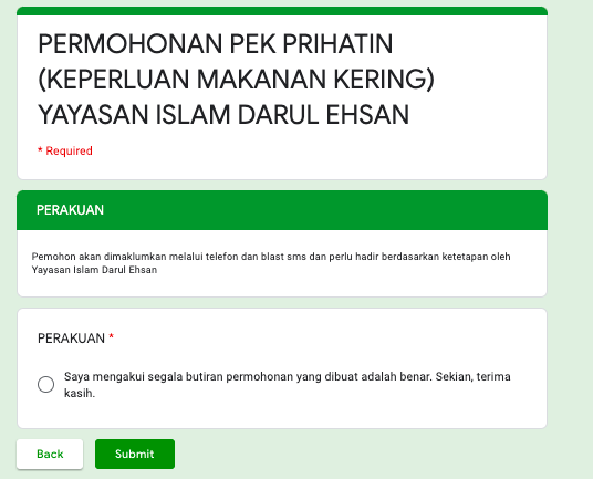 - Tandakan perakuan dan klik SUBMIT untuk menghantar permohonan anda.