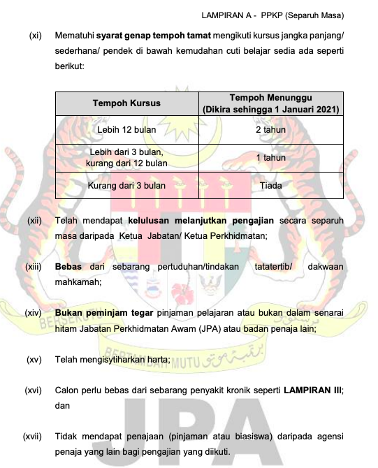 SYARAT PERMOHONAN PPKP IJAZAH PERTAMA SECARA SEPARUH MASA