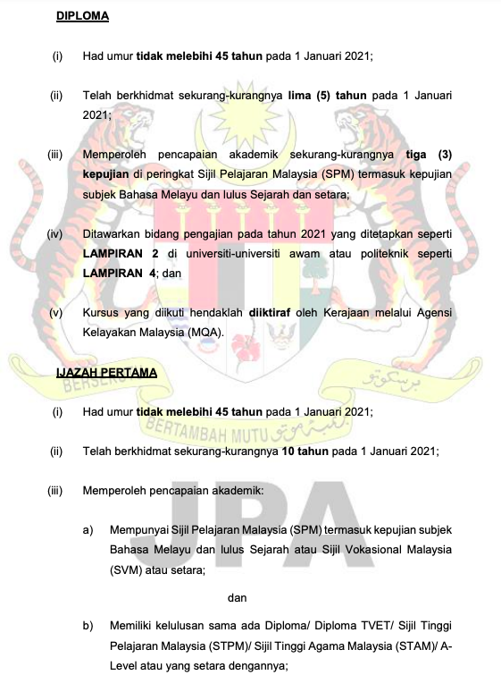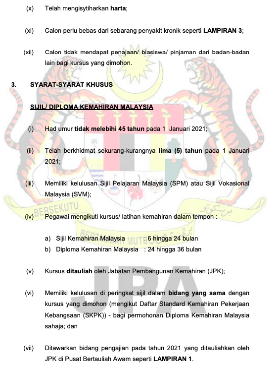 SYARAT PERMOHONAN PPKP SIJIL KEMAHIRAN MALAYSIA/DIPLOMA KEMAHIRAN MALAYSIA/DIPLOMA/IJAZAH PERTAMA SECARA SEPENUH MASA