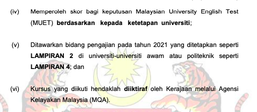 - Sijil Kemahiran Malaysia/Diploma Kemahiran Malaysia/Diploma/ Ijazah Pertama Secara Sepenuh Masa
