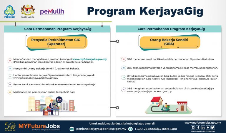 Sebarang maklumat lanjut dan pertanyaan mengenai permohonan Program KerjayaGig PEMULIH di: