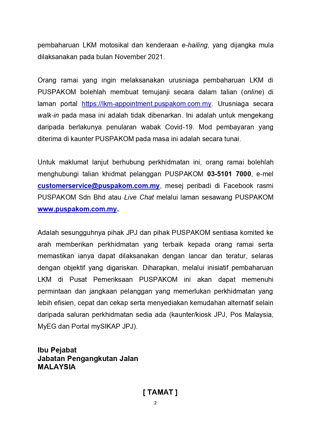 Baca juga: Cara Buat Temujanji JPJ & Perkhidmatan Kaunter APAD, PUSPAKOM, LPKP Juga Telah Dibuka