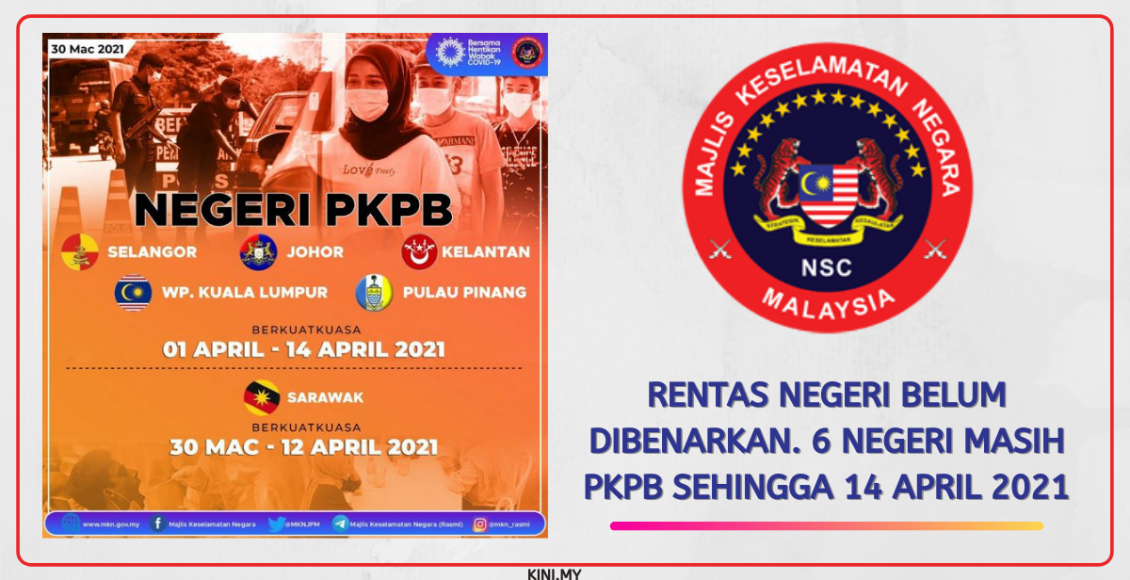Hal ini kerana kerajaan mengekalkan 6 negeri dibawah Perintah Kawalan Pergerakan Bersyarat (PKPB) sehingga 14 April 2021.