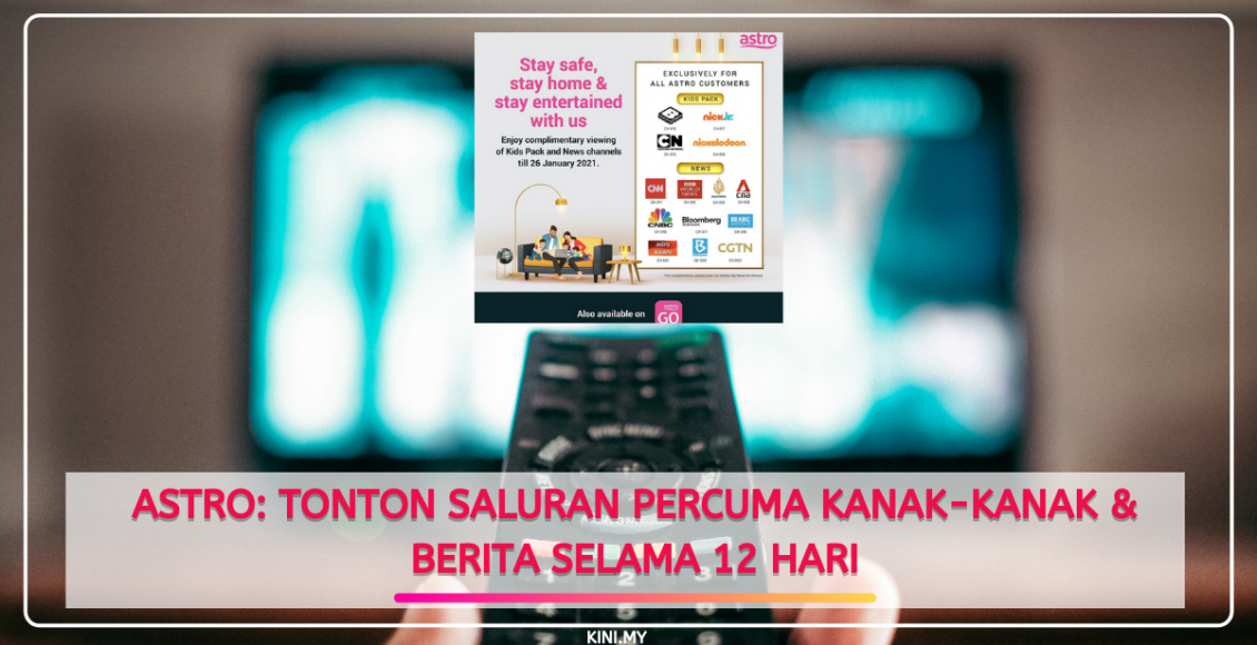 Mulai hari ini sehingga 26 Januari 2021, semua pelanggan Astro bakal menikmati saluran kanak-kanak dan berita secara percuma melalui televisyen dan peranti di Astro Go.