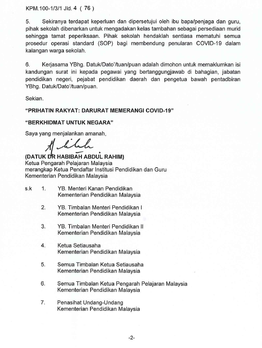 - Ibu bapa atau penjaga perlu memaklumkan perkara ini kepada pihak sekolah selewat-lewatnya 9 Februari 2021.