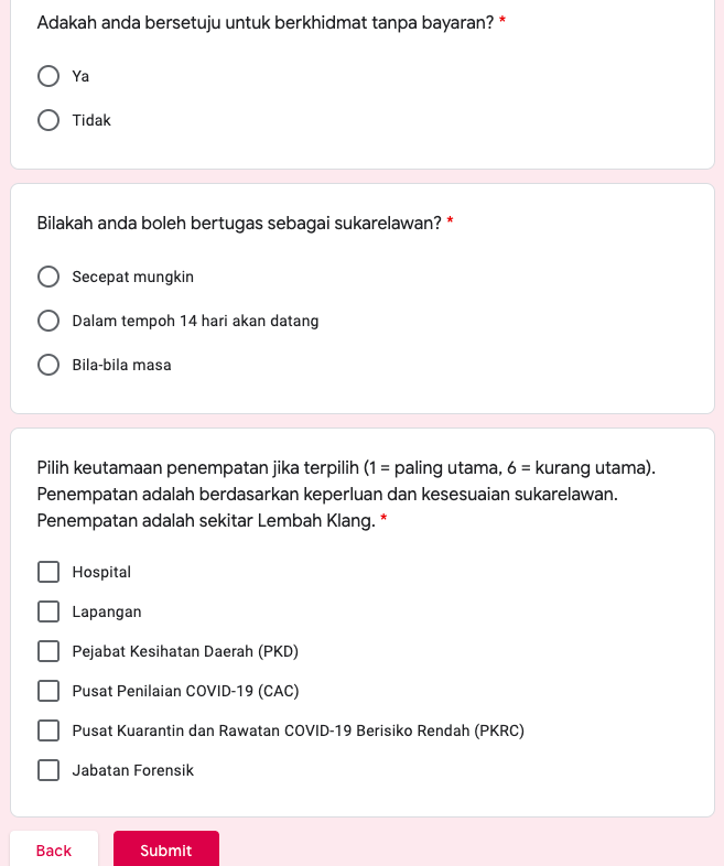 Sukarelawan akan ditempatkan di sekitar Lembah Klang mengikut kesesuaian di: