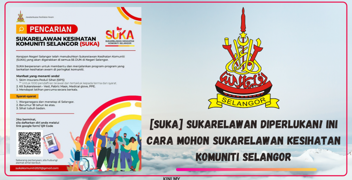 Kerajaan Negeri Selangor mempelawa rakyat Selangor yang berminat dengan kerja sukarelawan untuk menyertai Sukarelawan Kesihatan Komuniti (SUKA) yang akan digerakkan di semua 56 DUN di Negeri Selangor.