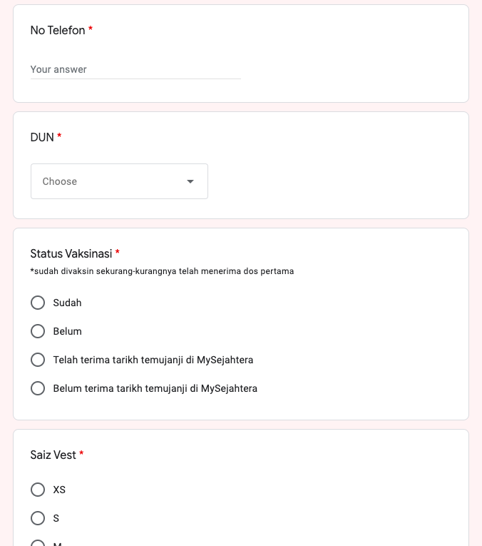 Anda dipelawa untuk pendaftaran sebagai Sukarelawan Kesihatan Komuniti (SUKA) melalui link googl form pada pautan berikut: