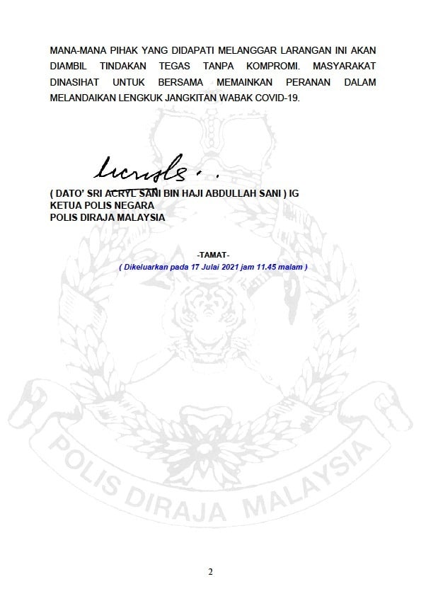 Ketua Polis Negara, Datuk Seri Acryl Sani Abdullah Sani berkata, tindakan ini diambil bagi: