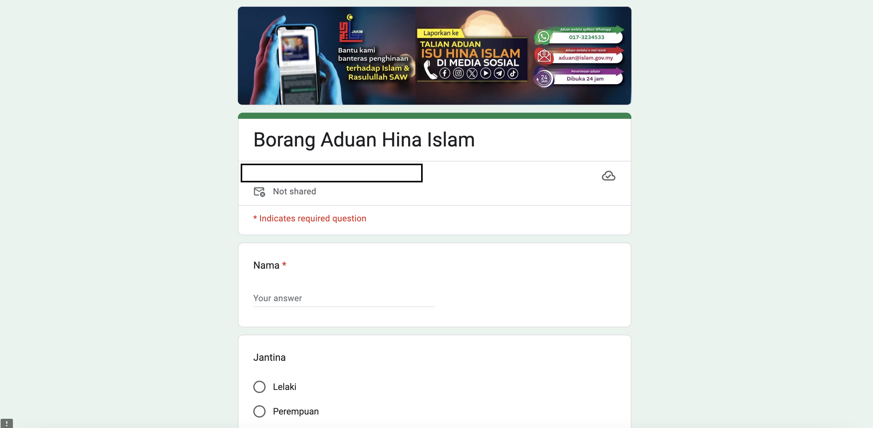 Bantu kami banteras penghinaan terhadap Islam dan Rasulullah SAW dengan membuat aduan beserta laporan di talian WhatsApp 017-3234533 dan emel [email protected].