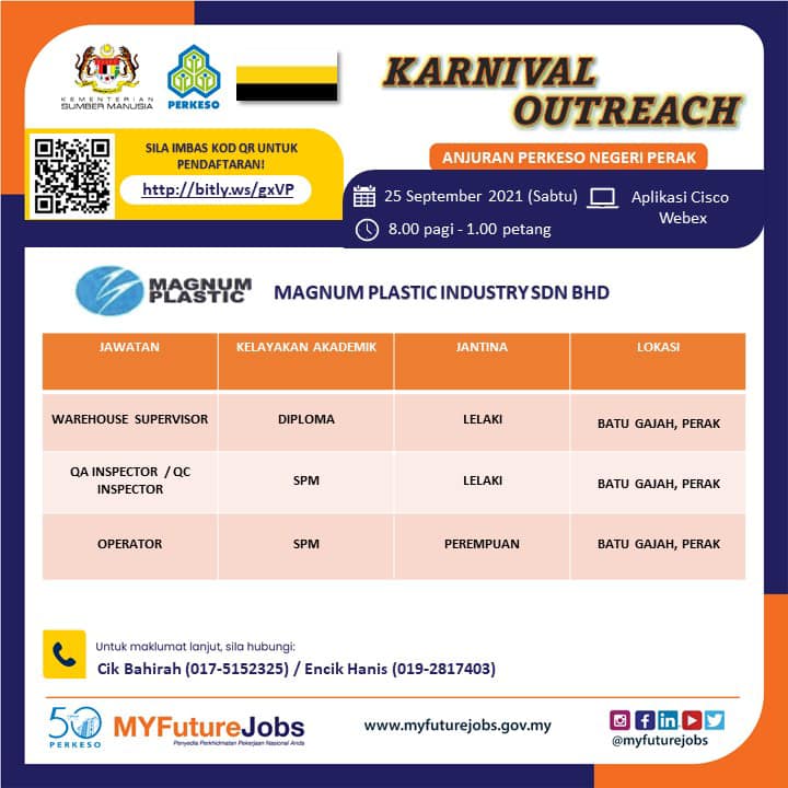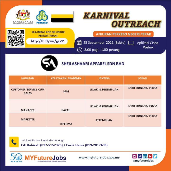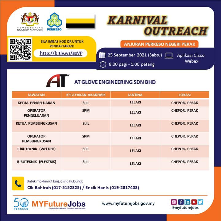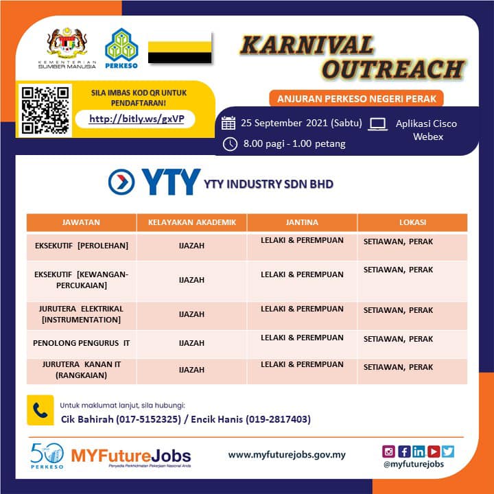 Belia diluar sana yang masih lagi mencari pekerjaan dipelawa untuk mengikuti Temuduga Khas Karnival Outreach Anjuran Pejabat PERKESO Negeri Perak.