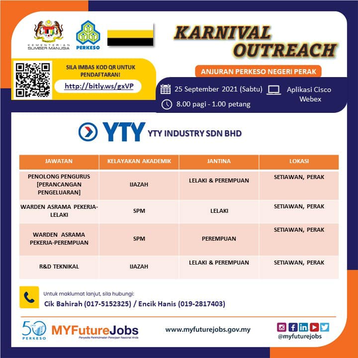 Dapatkan info selanjutnya mengenai Temuduga Khas Karnival Outreach Anjuran Pejabat PERKESO Negeri Perak pada artikel ini.