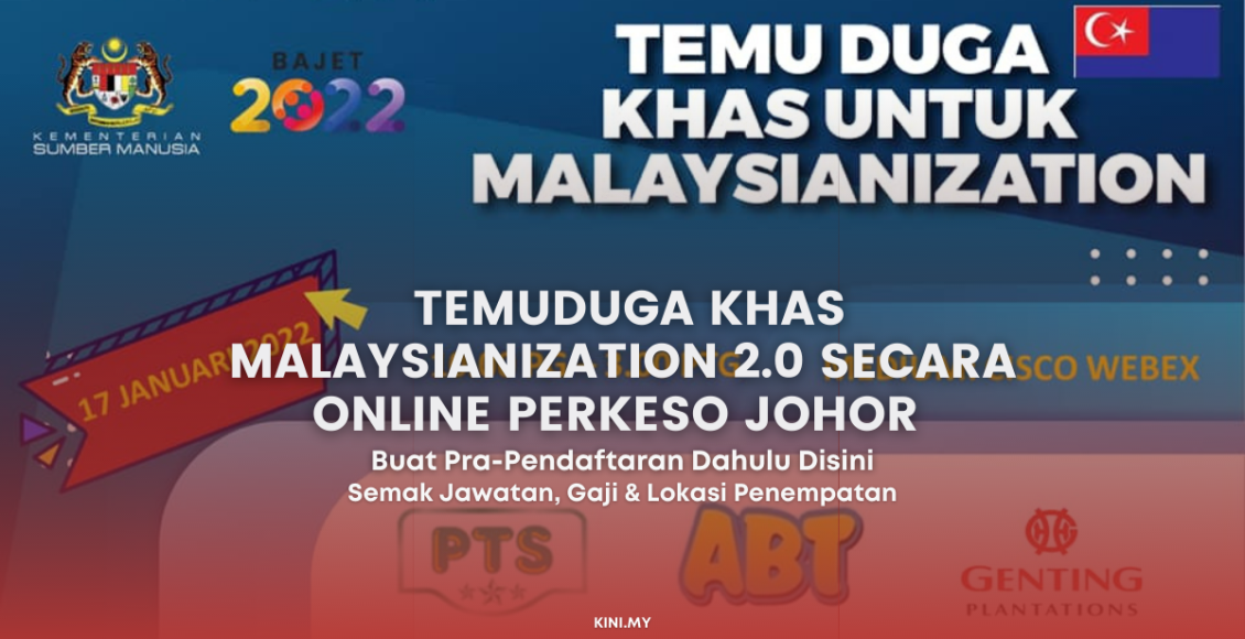 Jika anda berminat dan tidak ingin terlepas peluang untuk mengikuti Temuduga Khas Malaysianization 2.0, sila buat pendaftaran terlebih dahulu di pautan berikut: