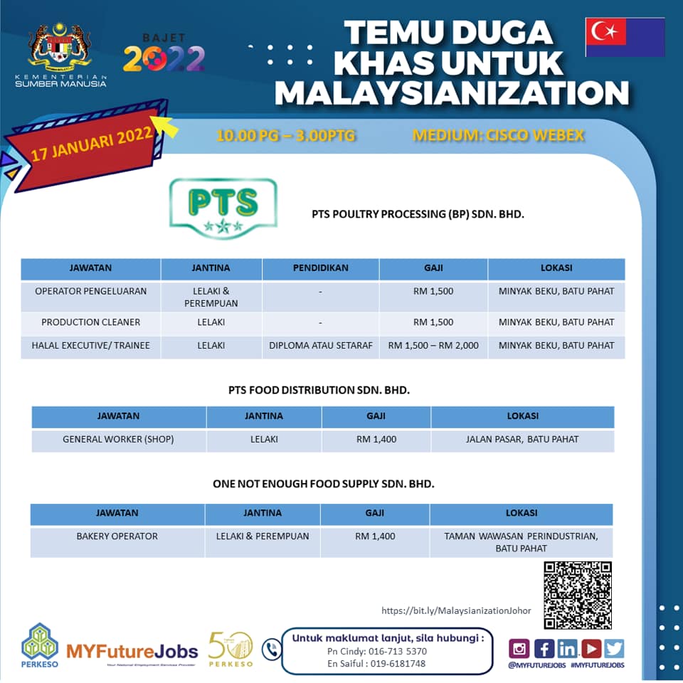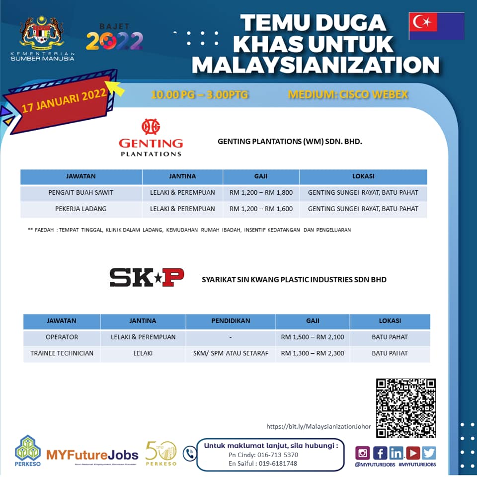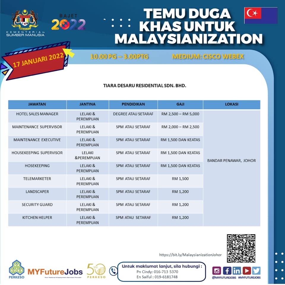 Warga negeri Johor yang merupakan pencari kerja boleh ikuti Temuduga Khas Malaysianization 2.0 yang akan diadakan secara online nanti.