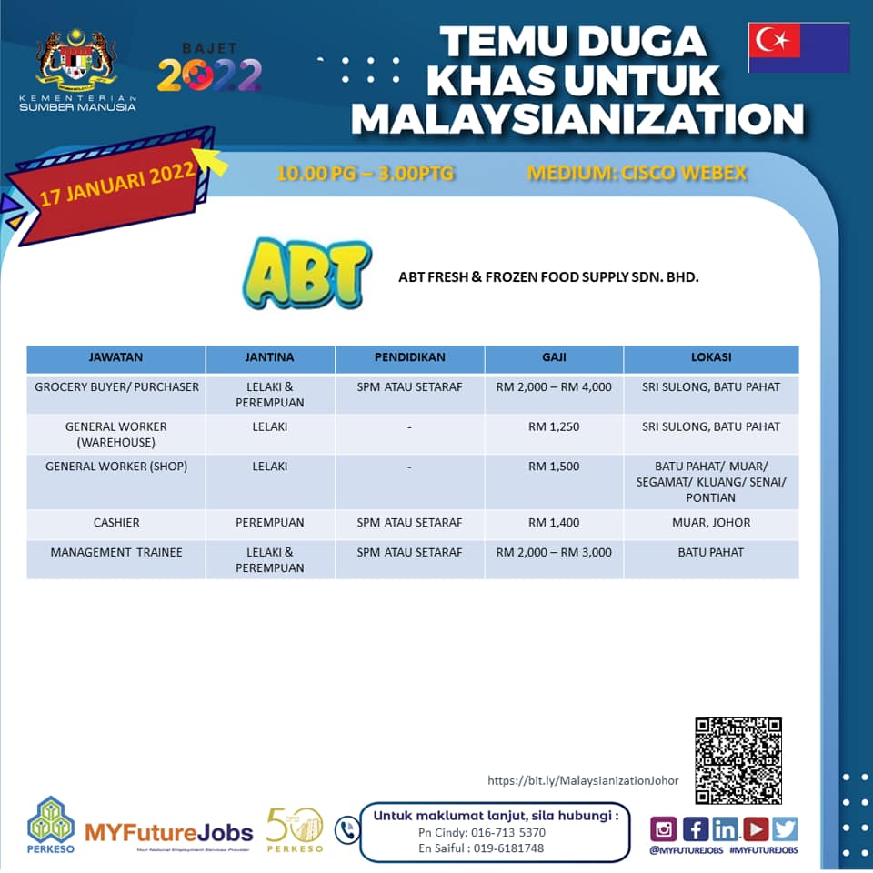 Untuk pengetahuan anda, Temuduga Khas Malaysianization 2.0 merupakan anjuran Pejabat PERKESO Johor dan terdapat 9 majikan yang terlibat dengan temuduga ini.