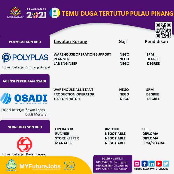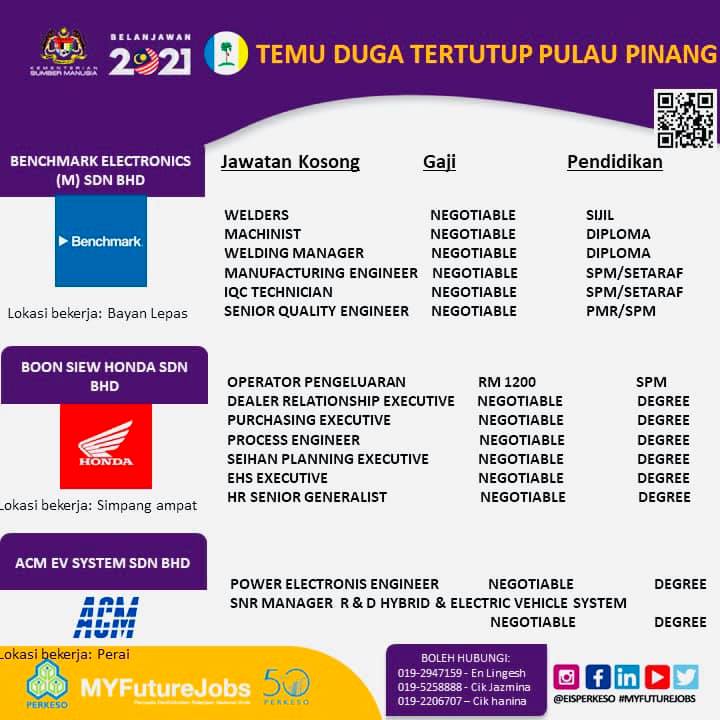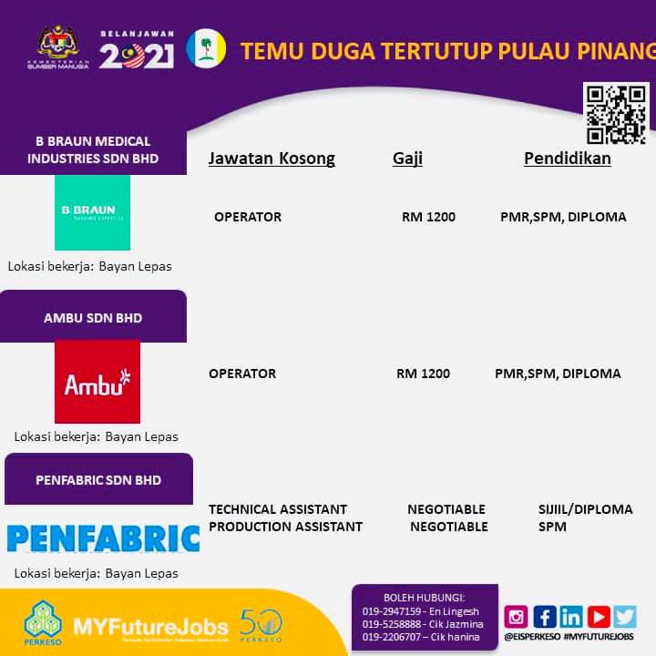 Dapatkan info selanjutnya mengenai Temuduga Tertutup Anjuran PERKESO Pulau Pinang dengan menghubungi: